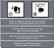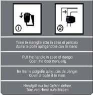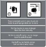 APERTURA PORTE IN CASO DI EMERGENZA Ciascuna porta di salita/discesa passeggeri è dotata di un dispositivo di sicurezza per l’apertura in emergenza dall’interno, azionabile come di seguito rappresentato