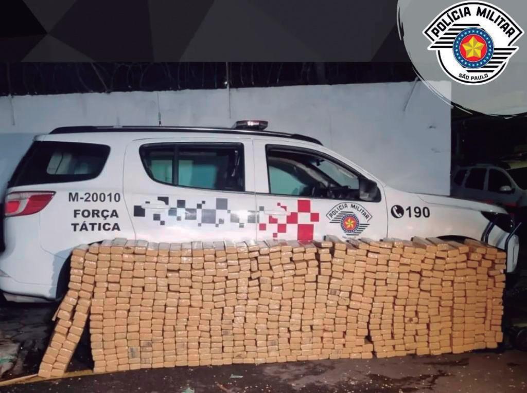 Na tarde de segunda-feira (5), policiais militares da Força Tática do 20° BPM/M prenderam três traficantes e apreenderam 756,2 quilos de maconha em Jandira. 599 tijolos da droga foram encontrados sob uma