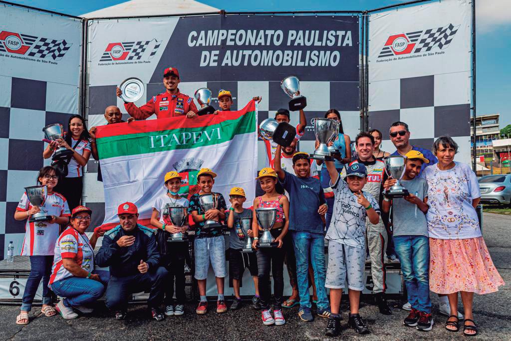 Muito emocionado, Lucas comemorou a vice-liderança ao lado de familiares, amigos e de um grupo de crianças do Colégio Irmãs Salesianas que foram pela primeira vez ao autódromo para apoiá-lo.