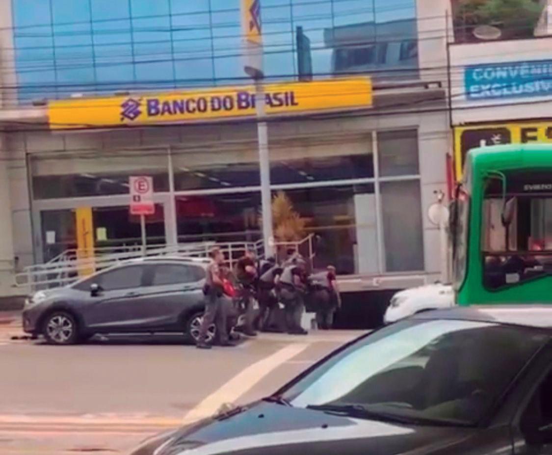 da agência juntamente com outros PMs. Eles flagraram os bandidos correndo no interior do Banco do Brasil e deram ordem para que se rendessem.