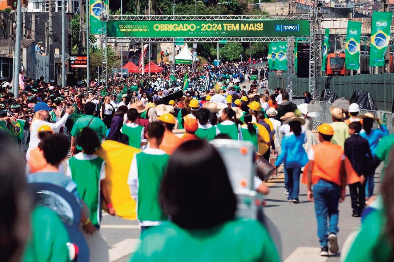 Um show de cores, sons e de nacionalismo. Estes foram apenas alguns dos ingredientes que marcaram o tradicional Desfile Cívico Militar de 7 de Setembro em Itapevi. O evento foi realizado no Corredor Oeste Metropolitano (Rodovia Nelson Ferreira da Costa), no Centro, e reuniu cerca de 10 mil pessoas, entre participantes e espectadores.