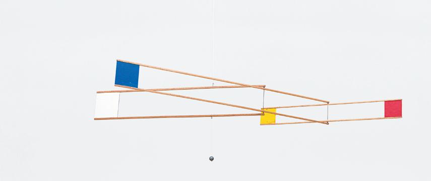 A exploração cinética das formas também se desprendeu do plano da pintura para ganhar o espaço como objetos ou esculturas que se movem entre os visitantes ou por eles. Rotores (2008), ou “mandalas mecânicas”, no dizer do artista, compõe o conjunto de nove objetos cinéticos feitos de dois discos de ferro negro com um rolamento entre si e, na face superior, diversas formas cromadas acopladas, num estridente contraste com a base. Os dedos do observador fazem girar as peças, produzindo um efeito hipnotizante e introspectivo, como dizer um mantra. Uma experiência solitária. Já Pororoca (2015) é uma instalação de esculturas mecânicas em tubos de aço que se movimentam numa meticulosa coreografia, modificando o desenho do espaço e a circulação dos espectadores num modo contínuo, já distante da pintura e mais próximo da performance. 10