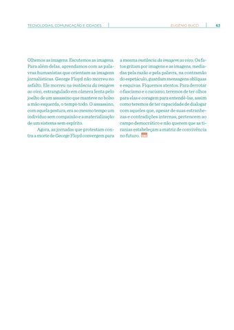 Olhemos as imagens. Escutemos as imagens. Para além delas, aprendamos com as palavras humanistas que orientam as imagens jornalísticas. George Floyd não morreu no asfalto. Ele morreu na instância da imagem ao vivo, estrangulado em câmera lenta pelo joelho de um assassino que manteve no bolso a mão esquerda, o tempo todo. O assassino, com aquela postura, era ao mesmo tempo um indivíduo sem compaixão e a materialização de um sistema sem espírito. Agora, as jornadas que protestam contra a morte de George Floyd convergem para