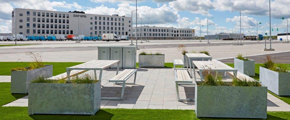 • Chaufførlounge med køkken, siddeområder, tv-stue og spilområde