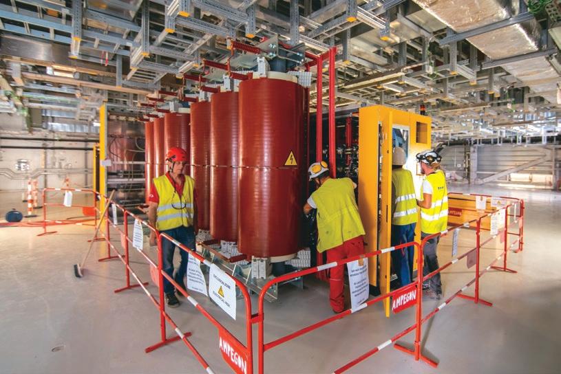 Le courant alternatif fourni par le réseau électrique doit être converti en courant continu pour alimenter les aimants supraconducteurs du tokamak. De nombreux dispositifs y contribuent, comme ces équipements fournis par la Corée.