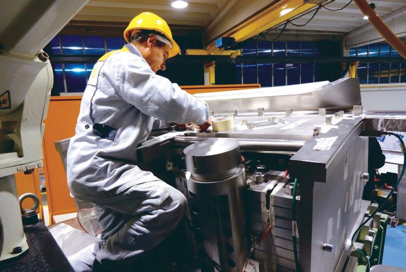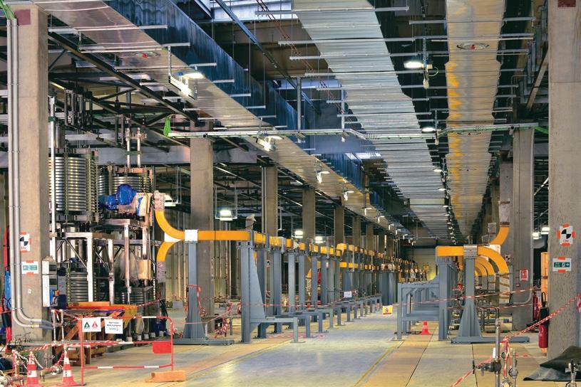 Sur site, dans sa vaste usine de bobinage, l’Europe vient de lancer la fabrication de la bobine de champ poloïdal n° 5 d’un diamètre de 15 mètres et d’un poids de 340 tonnes.