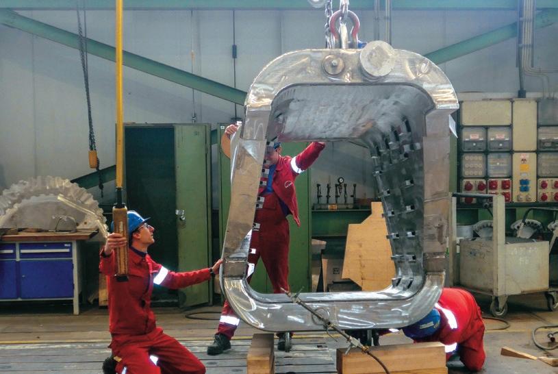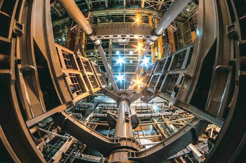 Haute comme un immeuble de quatre étages, cette maquette d’un secteur de chambre à vide se dresse dans l’atelier des projets spéciaux de la compagnie ENSA, près de Santander, en Espagne. À l’exception de sa largeur (10 degrés au lieu de 40), elle reproduit fidèlement les dimensions et les caractéristiques d’un véritable secteur. Cette maquette est utilisée pour développer et tester des systèmes de soudage automatique.