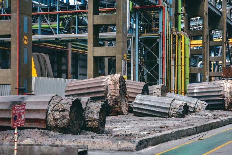 Évoquant les colonnes brisées d’un temple grec, ces lingots d’acier seront laminés pour fabriquer les éléments du cryostat d’ITER. Pour l’heure, ils refroidissent sur un lit de sable dans la fonderie de Larsen & Toubro Ltd à Hazira, en Inde.