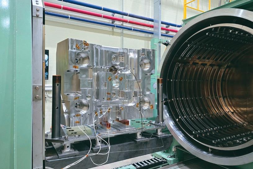 Pour former le composé supraconducteur niobium-étain, les bobinages des aimants de champ toroïdal (verticaux) doivent être soumis pendant une centaine d’heures à une température de 650° C (ici chez Mitsubishi Heavy Industries au Japon).