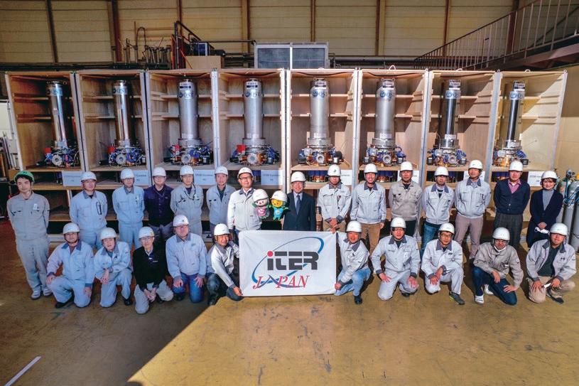 Chez Mitsubishi Heavy Industries, à Futami, au Japon, la production en série des « doubles galettes » qui forment le cœur des bobinages des aimants de champ toroïdal du tokamak est lancée.