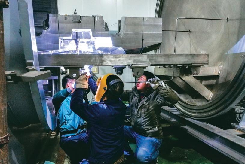 La Corée et la Chine ont fabriqué plus de la moitié des modules de couverture destinés à la paroi interne de la machine. Sur cette photo, les équipes d’ITER viennent de procéder à une inspection à l’usine Dongfang Heavy Machinery, en Chine