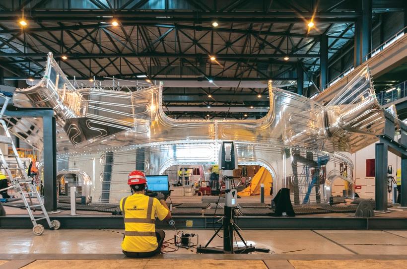 Activement refroidi et recouvert d’une mince couche d’argent, l’écran thermique protégera les aimants des transferts de chaleur radiatifs. Chez SFA Engineering, en Corée, les opérations de soudage d’un premier panneau sont en cours.