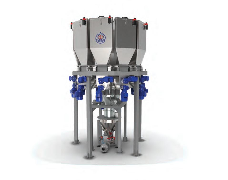 UNICA TWIN consists of a number of independent storage silos in stainless steel, to store different ingredients. Each silo is equipped with dosing screw (Lawer patented) which allows fast and accurate dosing; an efficient suction-filtering device guarantees maximum safety and a clean working area.