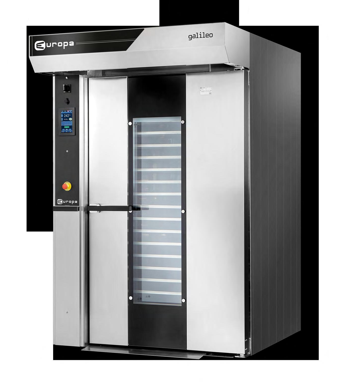 electric deck ovens, steam tube deck ovens, both traditional and evolved rotary rack ovens, multiloading deck ovens and provers. It features two models of rotary rack oven: the traditional GALILEO, with rear heat exchanger, and the evolved JOBS, with side heat exchanger. Furthermore, both series have two different versions, the DIGIT and the PRO ones, to satisfy all customers’ requirements. Among its many characteristics, the standard DIGIT version comes with digital control panel, 2-speed baking fan, weekly programmable ignition system, motorized steam damper and stainless-steel outer panels. The PRO version, instead, has the electromechanical control panel, manual steam damper and 1-speed baking fan. However, regardless their differences,