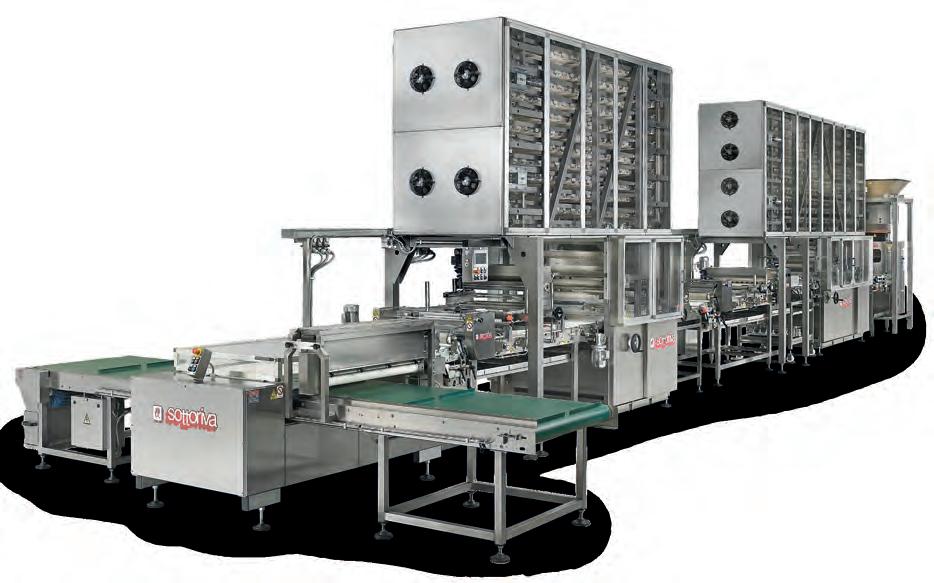 sui piccoli produttori, anche sulle grandi industrie che stanno prendendo piede nel campo della panifiazione. Le nascenti esigenze produttive richiedono un aumento della produzione nel più breve tempo possibile, garantendo uniformità e costanza nei risultati: la tecnologia Sottoriva si sposta così sugli impianti automatici e sulle linee che rappresentano oggi una parte fondamentale della produzione. Come la Bread Line, fioreall’occhiello del catalogo Sottoriva: una linea per la produzione di filonie baguette, disponibile anche con integliamento automatico, capace di raggiungere una produzione massima di 4.500 pezzi/ora.