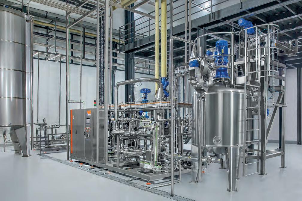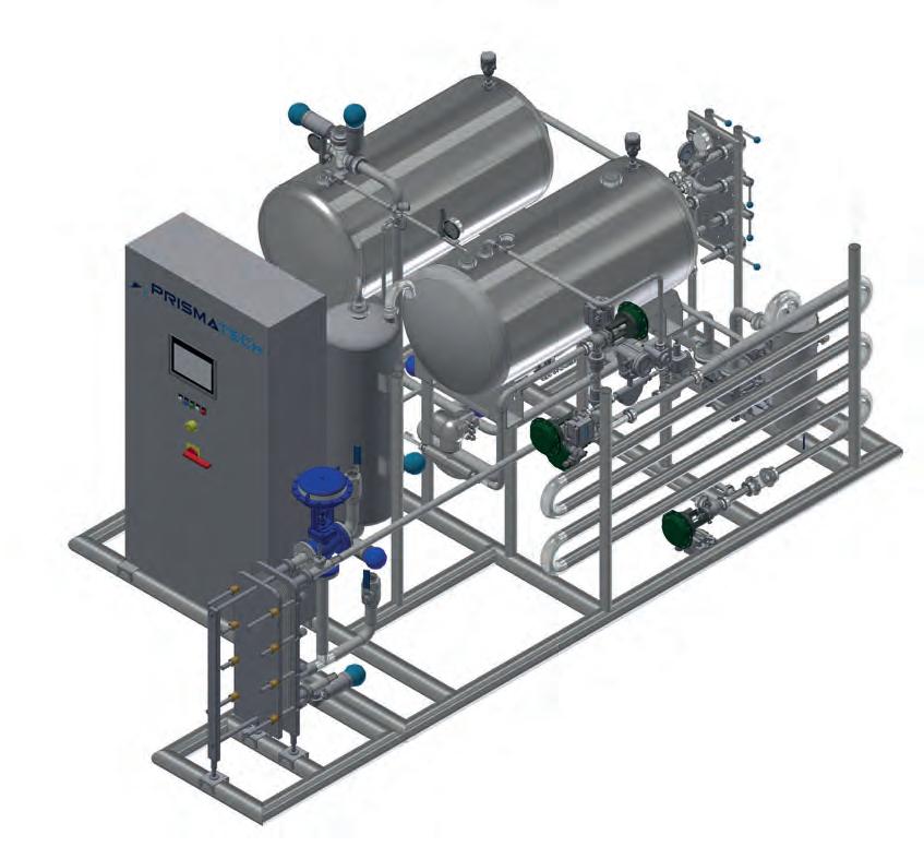 the temperature of 8°C - 100°C. in preparation for an integrated UHT pasteurization process. The water is then filled into an aseptic tank that supports an aseptic filling process performed under strict aseptic processing requirements.