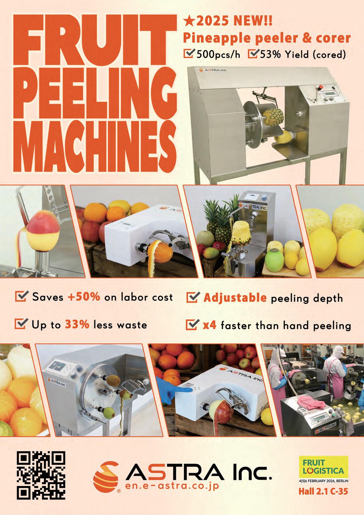 EXPERIENCE ASTRA’S PEELER & CORER TECHNOLOGY LIVE AT FRUIT LOGISTICA BOOTH C-35 | HALL 2.1. PG. 34/36