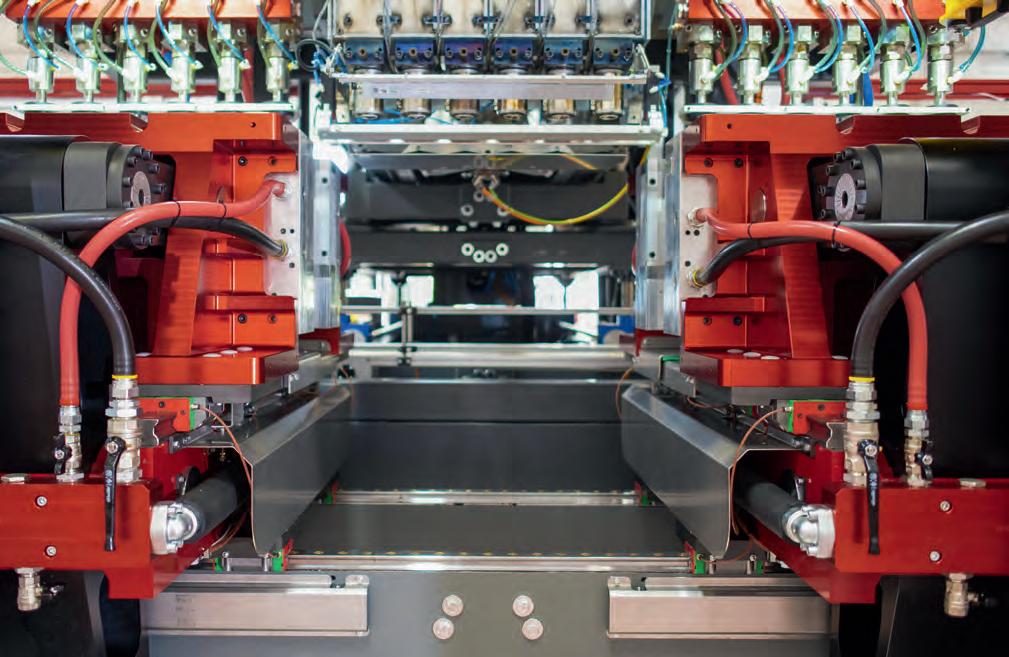 of the bottles lying on the cardboard, maintaining the organoleptic qualities of the wine. A second example of an ad vanced and innovative cartoning system has been designed and produced for a well-known brand of bitter, whose bot tle has a triangular shape. The system consists of a screw for the advancement of spaced bottles, a series of servo mo tors for the automatic adjustment of the grip format and, a pneumatic system of rotation of bottles.The future is focused on promoting the modularity of the ma chines, creating customized solutions but also standard ones, based on the increasingly demands of the market and therefore of customer, always ensuring the quality of production and services.