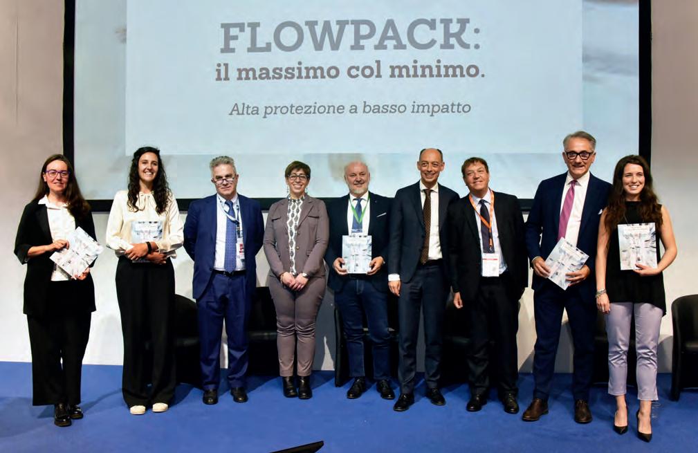 beyond the mere packaging produ ced and involves every step of the packaging machinery production process. We develop our solutions shoulder-to-shoulder with the main global flm suppliers and test them in agreement with major multinatio nal companies in order to provide them with a turnkey solution able to produce eco-packages.