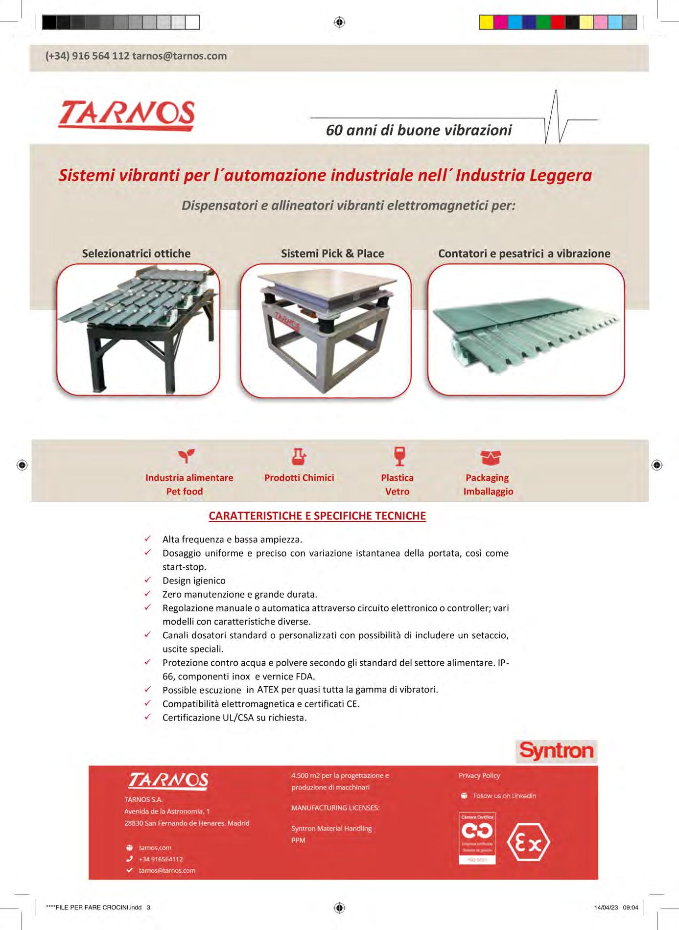 3-2023 Editrice Zeus sasVia C. Cantù , 16 20831 SEREGNO (MB) Tel. +39 0362 244182 0362 244186 www.editricezeus.com Tariffa R.O.C.: Poste Italiane spa Spedizione in abbonamento postale D.L. 353/2003 (conv. in L. 27/02/2004 n.46) art. 1, comma 1, DCB Milano TAXE PERCUE (tassa riscossa) Uff. Milano CMP/2 Roserio ISSN 1827-4102 Novità e panorama dei fornitori di macchine, impianti, prodotti e attrezzature per l’industria alimentare PACKAGING BEVANDE RASSEGNA Alimentare www.allegricesare.com www.mecpico.com www.minimotor.com www.agilex-italia.it www.cmz.it www.rossi.com www.ufs.it www.stego.it www.vikingsrl.it www.mentani.it www.opto-e.com www.spsitalia.it