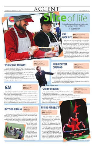 An insider’s guide to upcoming events this spring semester in Ithaca By Kelsey Fowler Accent Editor