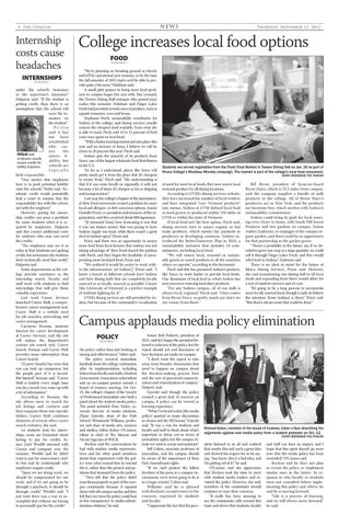of need for more local foods, they now source local seasonal produce for all dining locations. According to UVM’s dining services website, they have increased the number of local vendors and have integrated “core Vermont products” into menus. Sodexo at UVM defined local food as food grown or produced within 150 miles of UVM or within the state of Vermont. If local food isn’t the best option, Piech said, dining services tries to source organic or fair trade products, which ensure fair payment to producers in developing countries. Sodexo introduced the BetterTomorrow Plan in 2010, a sustainability initiative that includes 14 commitments, including local food. “We will source local, seasonal or sustainably grown or raised products in all the countries where we operate,” according to the document. Piech said this has pressured Sodexo’s partners, like Sysco, to work harder to provide local foods. One dimension of local food in which Sodexo has seen success is sourcing local dairy products. “For any Sodexo campus, all of our milk is always local, regional,” Piech said. “Ours comes from Byrne Dairy, so pretty much any dairy we use comes from them."