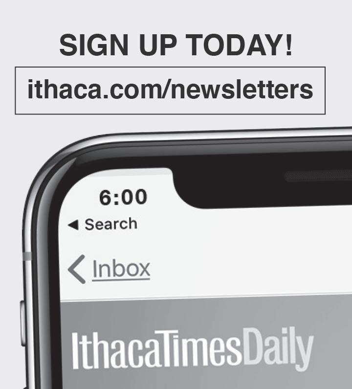 f r EE lanc E rs : Barbara Adams, Charley Githler, Stephen Burke, Bill Chaisson, Ross Haarstad, Steve Lawrence, Marjorie Olds, Peter Rothbart, Austin Lamb, Clement Obropta, Jake Sexton, Kira Walter, Vasant Alex Laplam, and Ceili Ayoung THE ENTIRE CONTENTS OF THE ITHACA TIMES ARE COPYRIGHT © 2026 BY PATHWAYS TO EQUITY, LLC. All rights reserved. Events are listed free of charge in TimesTable. All copy must be received by Friday at noon. The Ithaca Times is available free of charge from various locations around Ithaca. Additional copies may be purchased from the Ithaca Times offices for $1. SUBSCRIPTIONS: $139 one year. Include check or money order and mail to the Ithaca Times, PO Box 27, Ithaca, NY 14851. ADVERTISING: Deadlines are Monday 5 p.m. for display, Tuesday at noon for classified. Advertisers should check their ad on publication. The Ithaca Times will not be liable for failure to publish an ad, for typographical error, or errors in publication except to the extent of the cost of the space in which the actual error appeared in the first insertion. The publisher reserves the right to refuse advertising for any reason and to alter advertising copy or graphics deemed unacceptable for publication. The Ithaca Times is published weekly Wednesday mornings. Offices are located at 109 N. Cayuga Street, Ithaca, NY 14850 607-277-7000, FAX 607277-1012, MAILING ADDRESS is PO Box