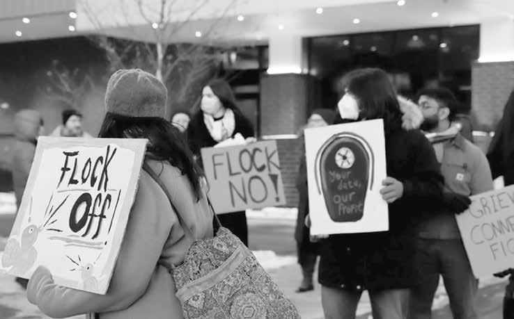 Local activist group Flock Off Ithaca organized a demonstration outside City Hall, encouraging attendees to bring signs and register for the meeting's public comment period to share their concerns.