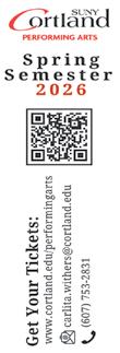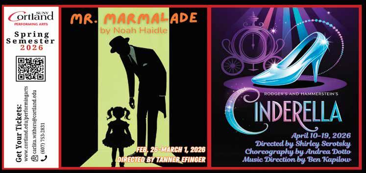 f r EE lanc E rs : Barbara Adams, Charley Githler, Stephen Burke, Bill Chaisson, Ross Haarstad, Steve Lawrence, Marjorie Olds, Peter Rothbart, Austin Lamb, Clement Obropta, Jake Sexton, Kira Walter, Vasant Alex Laplam, and Ceili Ayoung THE ENTIRE CONTENTS OF THE ITHACA TIMES ARE COPYRIGHT © 2026 BY PATHWAYS TO EQUITY, LLC. All rights reserved. Events are listed free of charge in TimesTable. All copy must be received by Friday at noon. The Ithaca Times is available free of charge from various locations around Ithaca. Additional copies may be purchased from the Ithaca Times offices for $1. SUBSCRIPTIONS: $139 one year. Include check or money order and mail to the Ithaca Times, PO Box 27, Ithaca, NY 14851. ADVERTISING: Deadlines are Monday 5 p.m. for display, Tuesday at noon for classified. Advertisers should check their ad on publication. The Ithaca Times will not be liable for failure to publish an ad, for typographical error, or errors in publication except to the extent of the cost of the space in which the actual error appeared in the first insertion. The publisher reserves the right to refuse advertising for any reason and to alter advertising copy or graphics deemed unacceptable for publication. The Ithaca Times is published weekly Wednesday mornings. Offices are located at 109 N. Cayuga Street, Ithaca, NY 14850 607-277-7000, FAX 607277-1012, MAILING ADDRESS is PO Box 27, Ithaca, NY 14851. The Ithaca