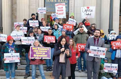 CMC nurses rallied on Dec. 20, 2025, outside Ithaca Town Hall to build public support prior to the authorization vote. Nurses expressed concerns regarding