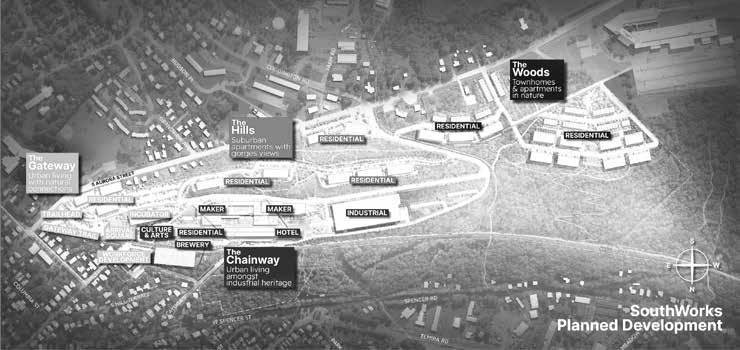 Within the SouthWorks Master Plan are details for four distinct neighborhoods across the 95-acre development: The Gateway, The Hills, The Chainway, and The Woods. Each area is different in design and use.