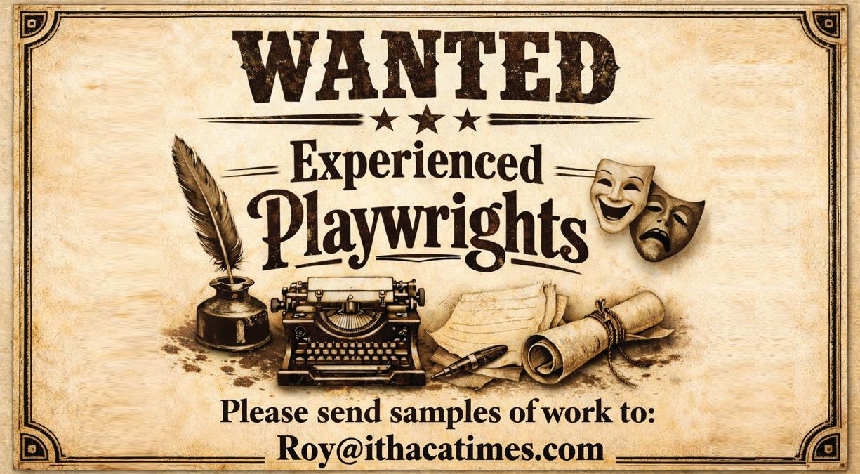 There’s a moment, tucked somewhere between the familiar Ithaca Time headlines and the turning of the page, when a new voice can enter your week. Not a distant, syndicated byline—but someone from here Someone who walks the same streets, shops in the same grocery stores, watches the same seasons change over Cayuga Lake, and carries stories that feel both personal and shared. With that in mind, we’re proud to introduce a new feature: Author of the Week. If you’ve followed our annual Readers' Writes, you already know the depth of talent that lives quietly in this community Each year, those pages arrive like a chorus many voices at once, each offering a glimpse into the creative life of Ithaca But what happens after that moment passes? What becomes of those voices once the issue is archived? Author of the Week is our answer It’s a way of slowing down, of making space—not for many voices all at once, but for one voice at a time Each week, we’ll feature a local writer who previously submitted their writing to Readers' Writes and invite you to spend a few minutes inside their work. Sometimes that will mean a poem—brief, precise, and lingering. Sometimes a short essay or story you can read in a single sitting. And sometimes, it will mean returning the following week for the next installment of something larger - a serial of sortsbeginning one week and ending in a future issue, Because stories don’t all arrive the same way Some are complete in a single breath. A poem that captures the hush of the first snowfall. A memory that flickers and resolves in a page or two These pieces ask only for your attention in the moment—and often stay with you far longer