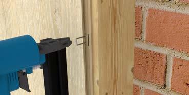 • Fasten the groove side of the Clicwall using wooden screws (3.5 x 25 mm) or staples (width > 10 mm and depth > 20 mm) every 40 cm. To fasten the Clicwall to metal studs, we recommend using self-drilling screws (3.5 x 16 mm) or cement board screws (3.9 x 19 mm). Make sure the diameter of the screw head is smaller than 7 mm. The tongue side of the next panel should click seamlessly into the Clicwall panel you installed before this one.