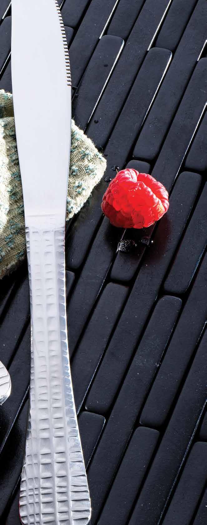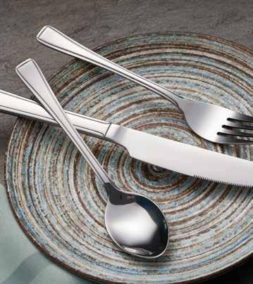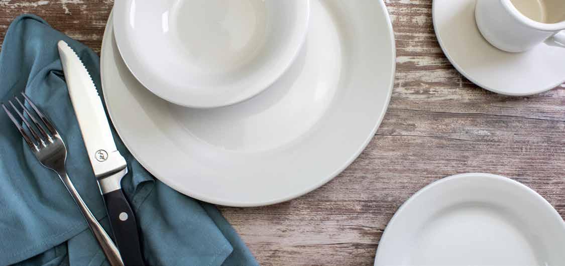 Along with our strategic partnerships in dinnerware, we also o er a complete tabletop portfolio, including flatware, glassware, and bu etware.