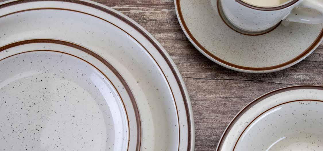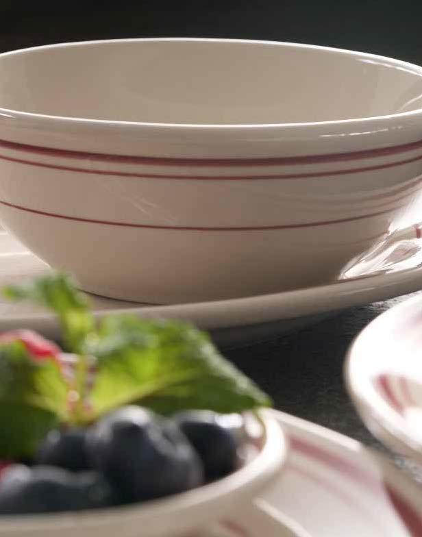 Our product collections are carefully curated to reflect today’s most soughtafter trends while staying rooted in timeless design. Whether it’s the charm of nostalgia, the unique artistry of reactive glazes, or modern reinterpretations of classic shapes, we ensure our o erings keep our customers ahead of the curve. As the industry evolves, we remain committed to innovation, style, and service, delivering tabletop solutions that not only meet the moment but help define it.