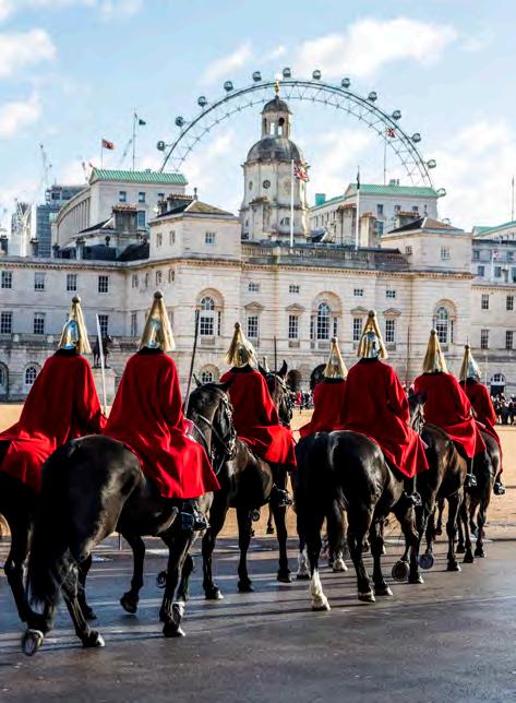 guard changes throughout the day. Guards are only on duty for two hours at a time, with the main changing of the guards taking place at 11 a.m. After exploring the castle, pop across the street for an afternoon tea fit for royalty at Leaf restaurant at The Castle Hotel. The classic Georgian building on Windsor’s high street, dating back to 1528, was recently renovated to add a modern flair yet still maintains a traditional element suitable for high tea. In recognition of the Platinum Jubilee, treats are served up on golden threetier trays resembling crowns.