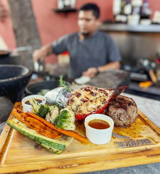 Tauro is where to go to enjoy the property’s fine-dining American steakhouse with a Mexican touch. Here, you can indulge in premium cuts paired with equally excellent wines, and begin or end your evening at the elegant Martini Bar, located right next to Tauro. Its dry-aging chamber is the largest in Riviera Maya and allows the chefs to craft exceptional flavours and textures diners understandably come back for. One of the restaurant’s signature creations is the mezcal-aged steak, where the mezcal imparts a distinctive, smoky character to the meat. In addition to premium steaks like rib-eye and tomahawk, you’ll also find select fish and vegetable dishes on the menu.