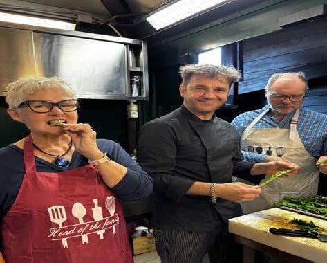 Our culinary adventure began in the “supermarket vineyard,” where we foraged chicory, dandelion, plantain and grape leaves to prepare a lunch of risotto. We learned to make risotto from scratch: toasting rice, stirring in a homemade broth made from our foraged greens (simmered for just twenty minutes with pumpkin and onion) and finally finishing it with butter, Parmigiano and a few precious drops of balsamic. As chef Stefano reminded us, “Balsamic is an ingredient, not a condiment. Use it only at the end—it must not be too hot, or it will lose its flavour.”