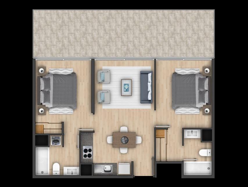 Las imágenes contenidas en esta ficha fueron elaboradas con fines ilustrativos, todas las dimensiones son aproximadas, no constituyendo necesariamente una representación exacta de la realidad. Su único objetivo es mostrar una caracterización general del proyecto y no de cada uno de sus detalles. Lo anterior se informa en virtud de lo señalado en el número 5 del artículo único de la Ley 19.472 Medidas interiores de los departamentos según el piso pueden presentar diferencias debido al espesor y ubicación de los muros estructurales producto de la nueva norma sísmica. MODELO AD