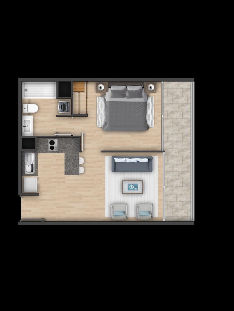Las imágenes contenidas en esta ficha fueron elaboradas con fines ilustrativos, todas las dimensiones son aproximadas, no constituyendo necesariamente una representación exacta de la realidad. Su único objetivo es mostrar una caracterización general del proyecto y no de cada uno de sus detalles. Lo anterior se informa en virtud de lo señalado en el número 5 del artículo único de la Ley 19.472 Medidas interiores de los departamentos según el piso pueden presentar diferencias debido al espesor y ubicación de los muros estructurales producto de la nueva norma sísmica.