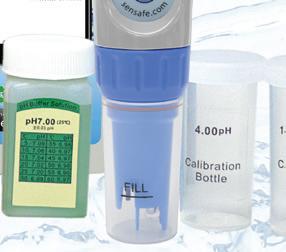 The displacement/exchange of Na+ and H+ on the pH glass bulb is determined by the acidity/alkalinity of the water. Acidic means many hydrogen ions (H+). Alkali means less hydrogen ions. The liquid inside the pH glass bulb is a proprietary buffer solution that produces the mv potential. This mv value is a very predictable current in our eXact® pH+ Meter. After calibration with pH 7.00 and pH 4.00 Standards, your pH measurements become reliably accurate.