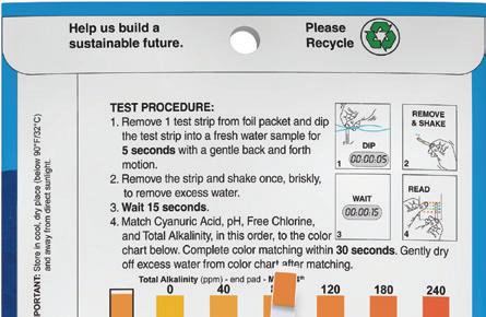 TOTAL ALKALINITY: 0, 40, 80, 120, 180, 240, 360 mg/L MONOPERSULFATE (MPS) LOW, OK, HIGH PH: 6.0, 6.4, 6.8, 7.2, 7.6, 8.2, 9.0 Part No. 481340 $8.99