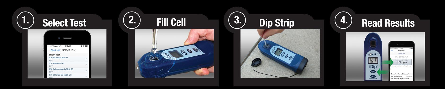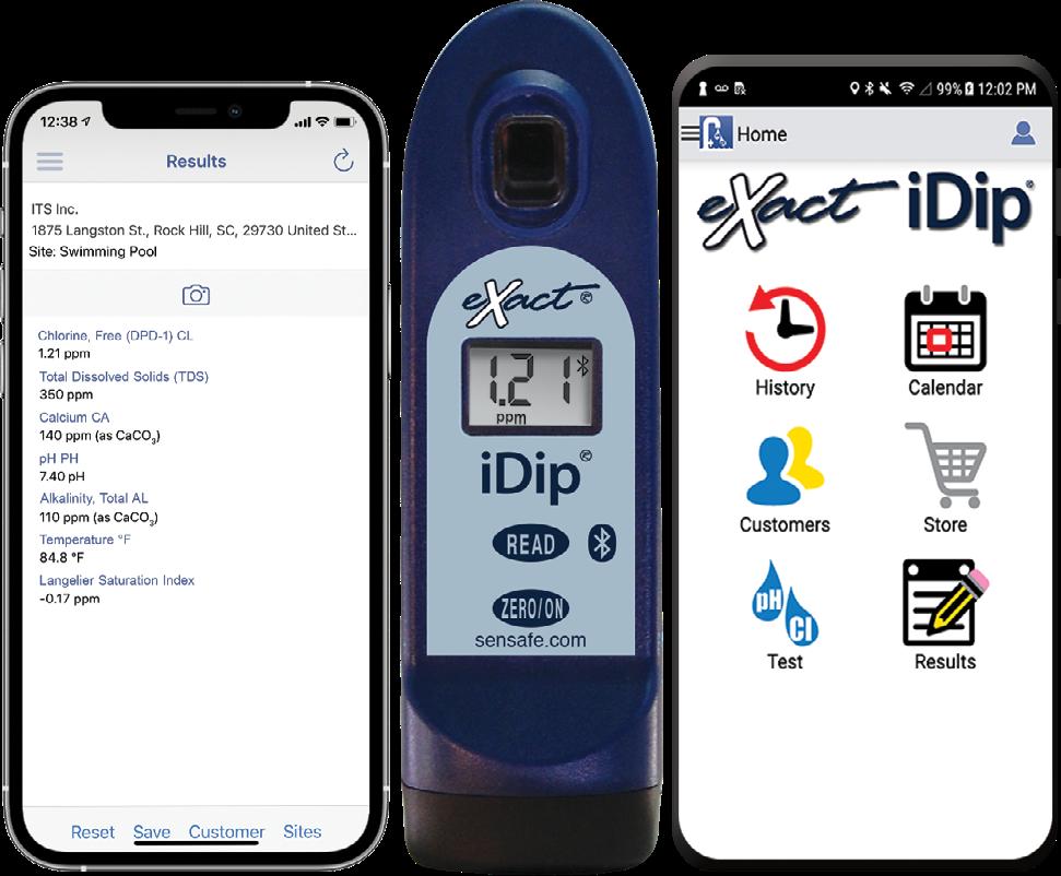 The eXact iDip® Smart Photometer System® is the first handheld photometer that pairs directly with a smartphone/tablet. This revolutionary water testing system will dramatically improve the efficiency of your water testing regiment. Because the app is the brain of the system — you'll always have the most up–to–date tests. Download new tests and updates with ease!