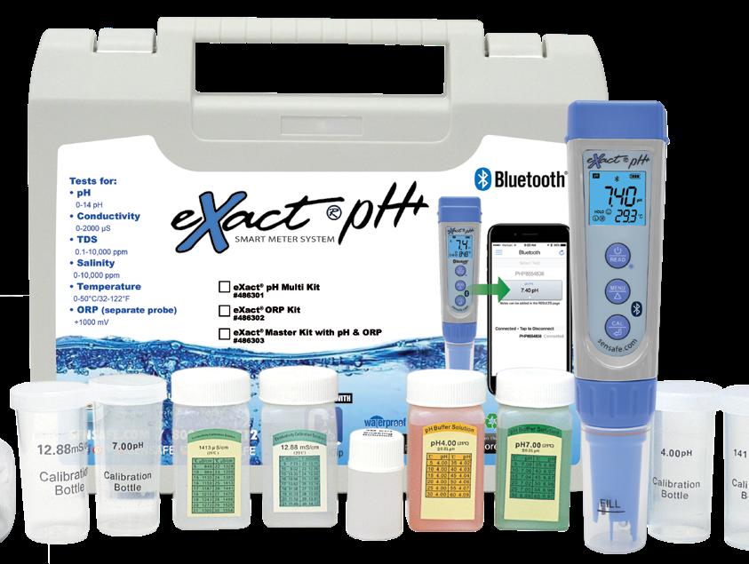 Medidor eXact® pH+ (con sonda de pH), sonda de ORP, cuatro pilas AAA, cordón, solución de almacenamiento de KCl de 3M, dos frascos de calibración de pH, dos soluciones de calibración de pH, un frasco de calibración de conductividad, dos soluciones de calibración de conductividad y un frasco de recogida de