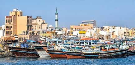 Die Altstadt Dubai hat den Bauboom grössten teils überlebt. Der Stadtkern ist fast vollständig erhalten. Im Stadtteil Bur Dubai, befindet sich der «Old Souk» sowie die meisten Sehenswürdigkeiten entlang des Dubai Creeks. Von Bur Dubai nach Deira fährt man rund 10 min. mit dem höl zernen Wassertaxi. In Deira angekommen ist bereits der berühmte Gewürzsouk zu sehen. Man erkennt den Markt aber auch am betörenden Ge ruch, den die Gewürze aus aller Welt verströmen. Zum Goldsouk sind es zu Fuss nur noch paar Minuten. Mehr als 300 Geschäfte in einer Strasse und alles ist Gold was glänzt – einen Spaziergang in der «City of Gold» vergisst man so schnell nicht. Geführte Touren können Sie bei unserer Reiseleitung buchen.