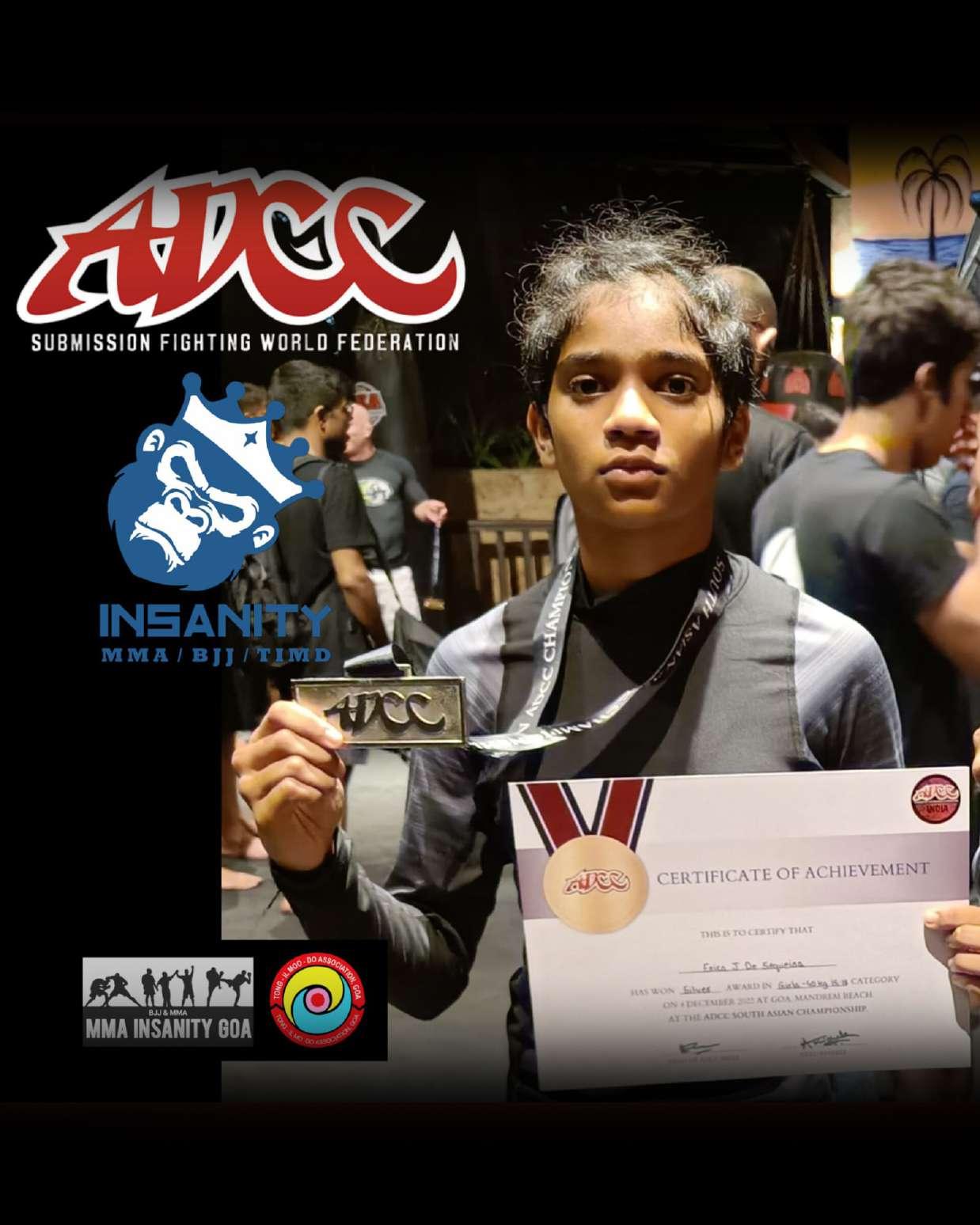 Erica with the silver medal that she won in the 40-45 kg women's category competition at the ADCC South Asian Championship 2022 held in Goa