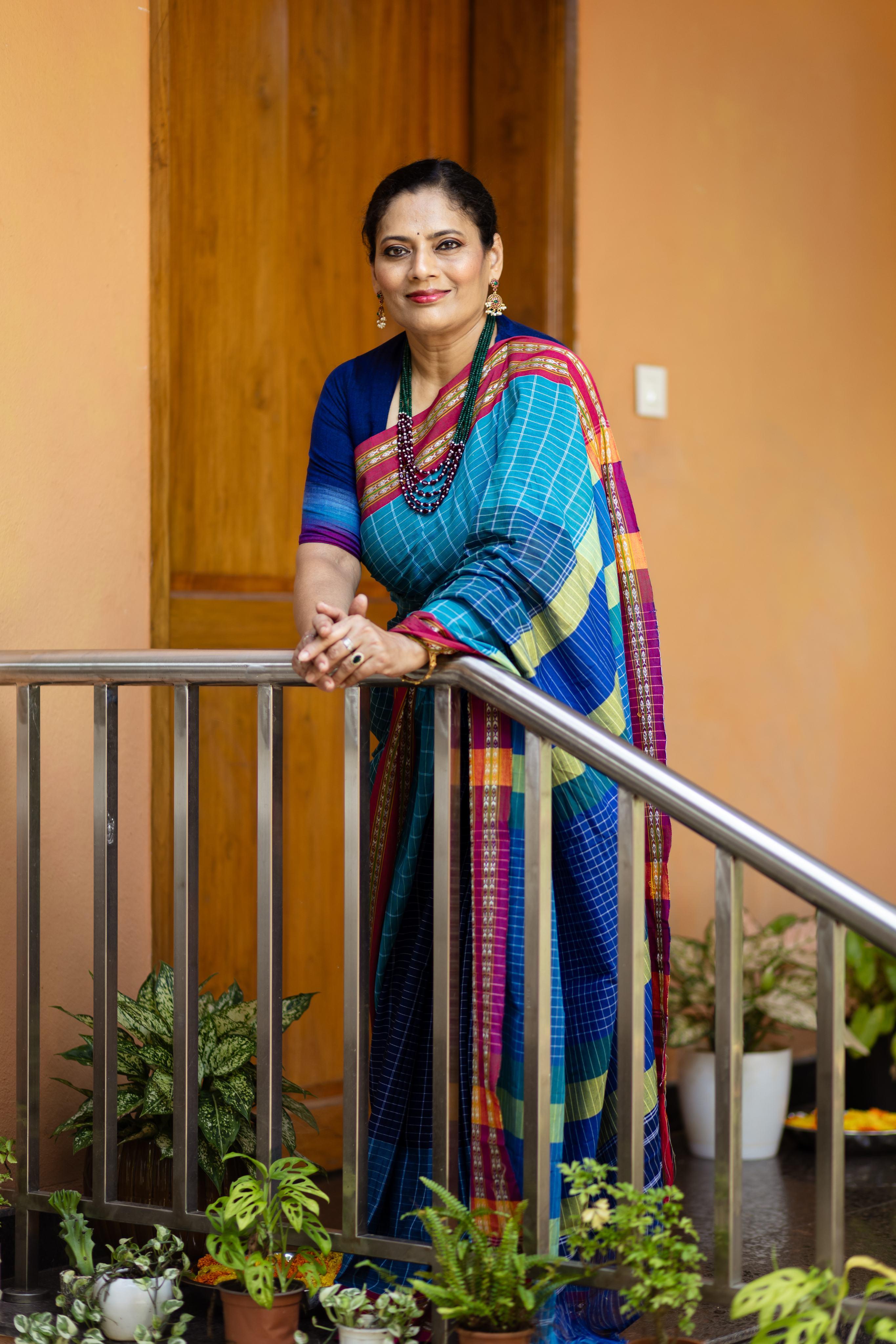 Revives Goa’s Kunbi saree, empowering weavers and preserving heritage through modern craftsmanship.