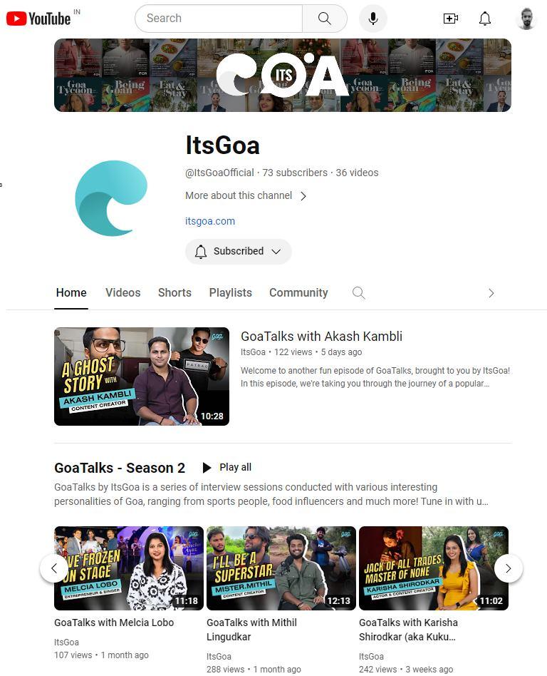 Goa, the tiniest state on the western coast of India, boasts golden pristine beaches, palmfringed avenues, flavourful food, delicious Portuguese-influenced sweets, and warm, hospitable people. Also known as the Ibiza of India for its partying. A tropical paradise of flora and fauna, from the very famous 'almi' (mushrooms) endemic to its forests, that grow only on the red mud anthills, to the solar prawns that are fished immediately after the monsoons, Goa is unique. Tourists are also attracted to Goa for its cultural heritage - from the famous old Portuguese churches like Se Cathedral in Old Goa, the 16th Century Safa Masjid in Ponda and Shree Mangesha Temple in Mardol, the legendary Arvalem or Pandava Caves where the Pandavas of the Mahabharat fame lived, to its two unique festivals - Carnival and Shigmo. Goa plays host to many festivals - the International Film Festival of India that promotes cinema, the Serendipity Art Festival, Sunburn Music Festival, The Grape Escapade to name a few. To showcase this varied heritage of culture, art, tradition, food, and people, in 2015 ItsGoa was born. The main aim was to make it the premier portal for all things Goa. We were able to showcase Goa like never before. Soon our blogbased website transcended the virtual space, with the ItsGoa magazine – a sought-after resource for visitors to Goa from countries like Norway, Germany, UK, USA, UAE, etc.