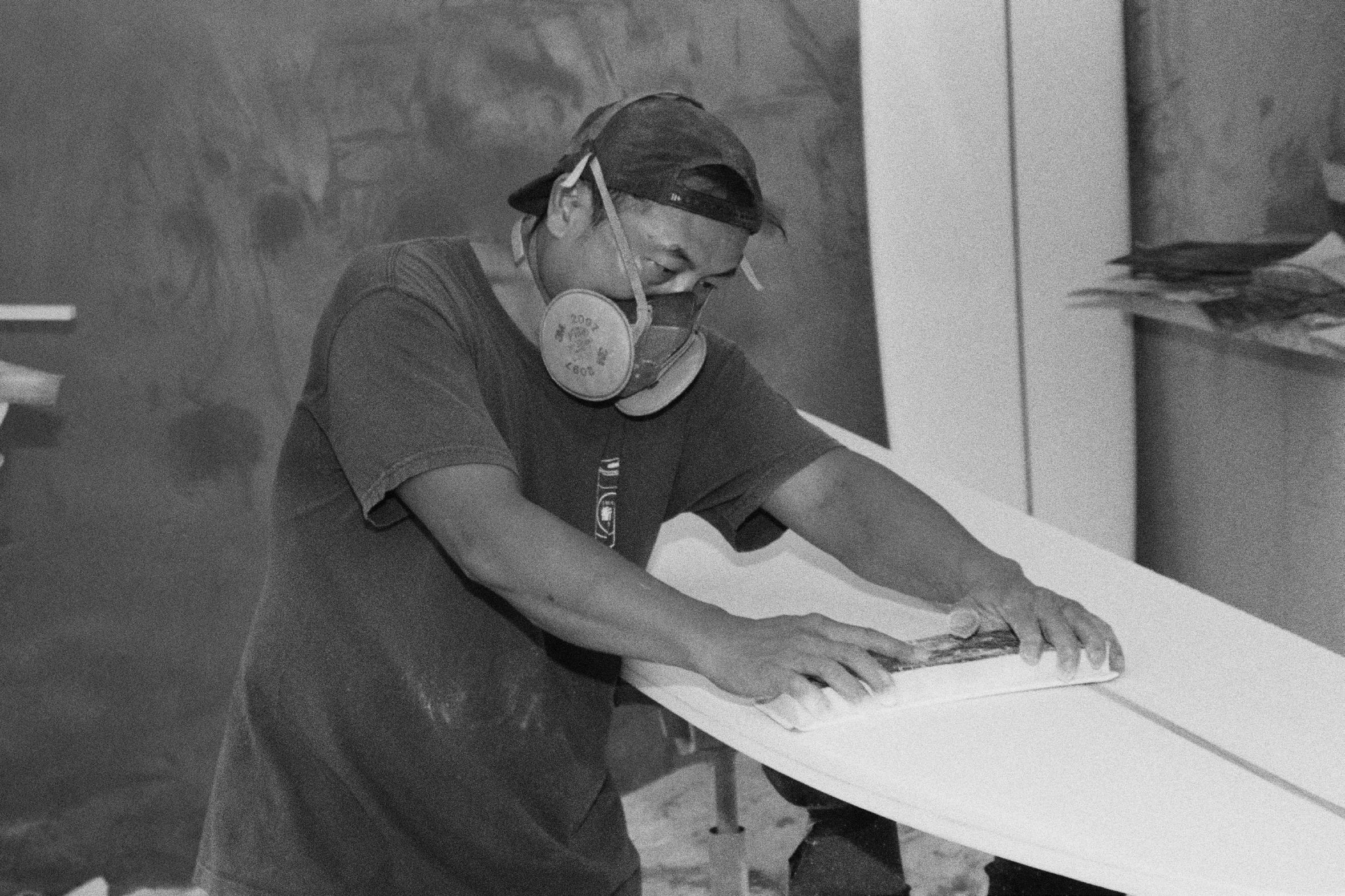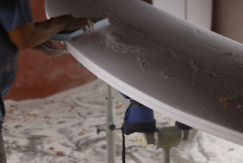 Extending the handle outward allows for expanding the dust suction area to accommodate various surfboard sizes