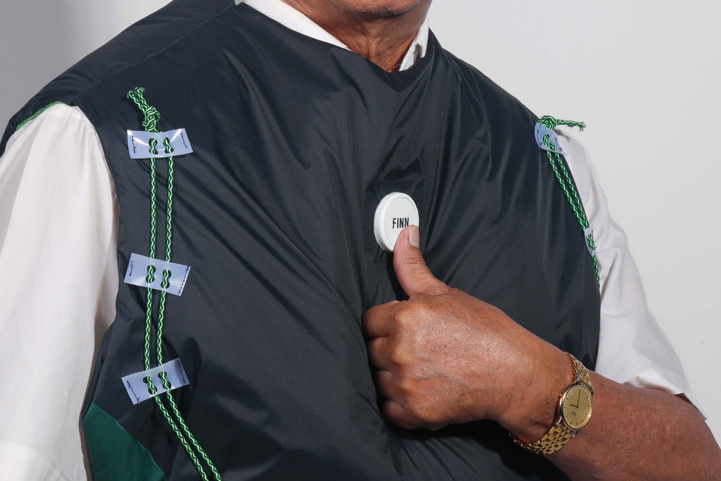 Fínn 是一件專為老年人設計的防風加熱背心,預防在冬天的時候,因為浴室和房間之間的溫 度冷熱差引發心血管疾病。